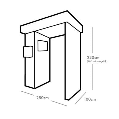 - We kunnen eigenlijk bij elke locatie terecht en omdat onze photobooth is opgebouwd uit delen. Als we cool willen klinken zeggen we weleens: “onze photobooth is modulair”. Hij kan dus in elke lift en past door elke deur. Opgebouwd is hij 2,30 hoog, hij is 1,00 diep en 2,50 breed (denk aan de ruimte van een kleine 3-zitsbank)