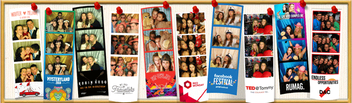 Hieronder zie je een kleine selectie van waar we de afgelopen tijd met onze fotobooths zoal geweest zijn. De foto wordt groter als je er op klikt dan kan je je alvast een klein beetje op je eigen event in de fotobooth wanen 😉