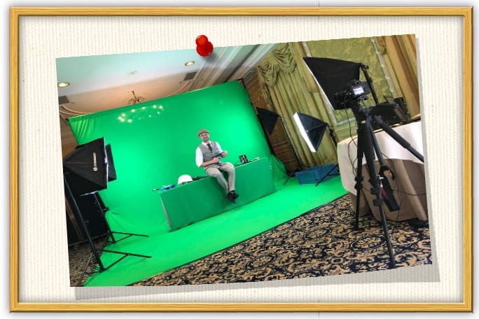 1. Je gasten gaan in onze mobiele greenscreen studio voor de groene achtergrond staan