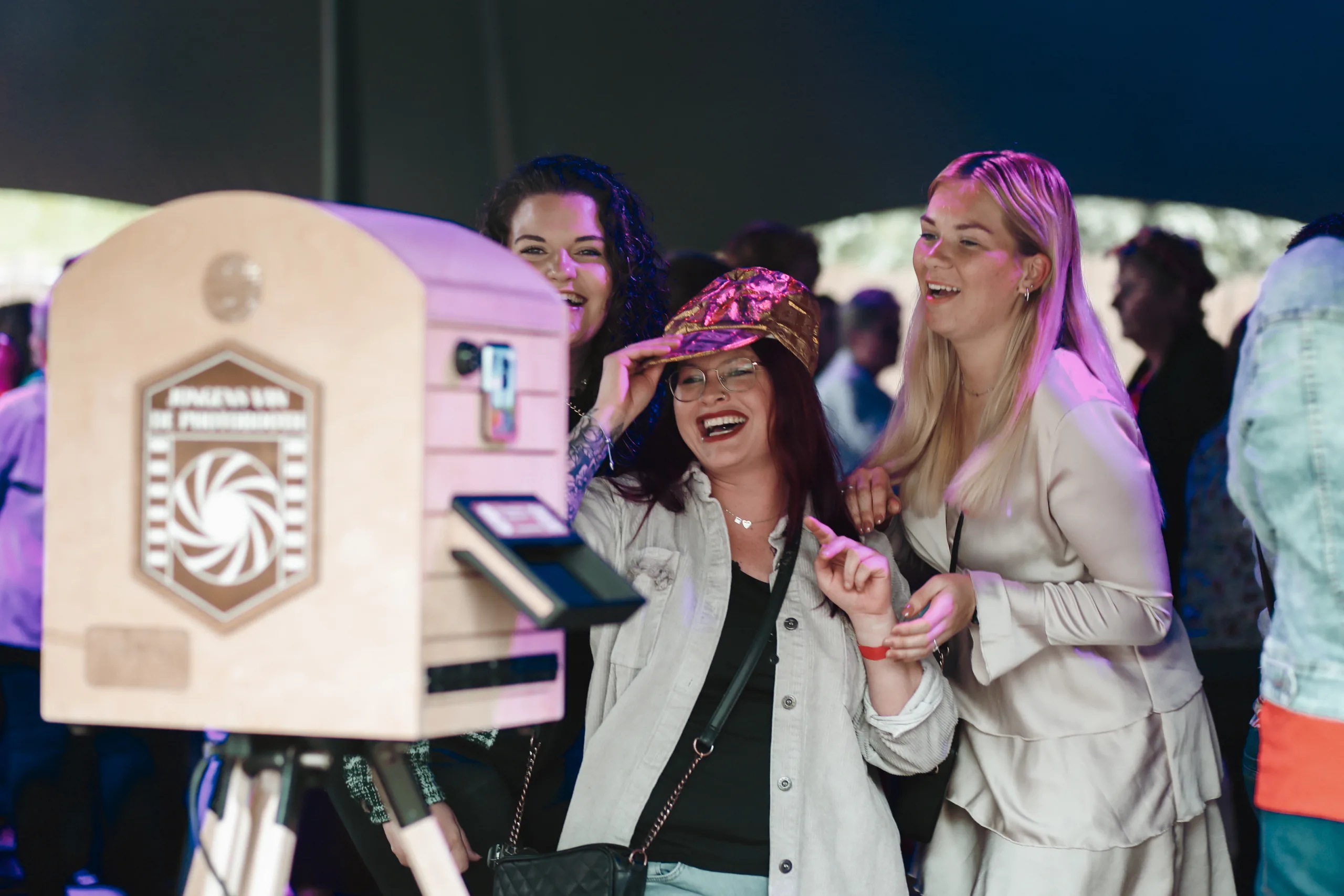 Of het nu een intieme bruiloft, een bruisend festival of een bedrijfsfeest is, onze warme, stijlvolle, moderne en toch vintage photobooth draagt altijd veel bij aan de sfeer.